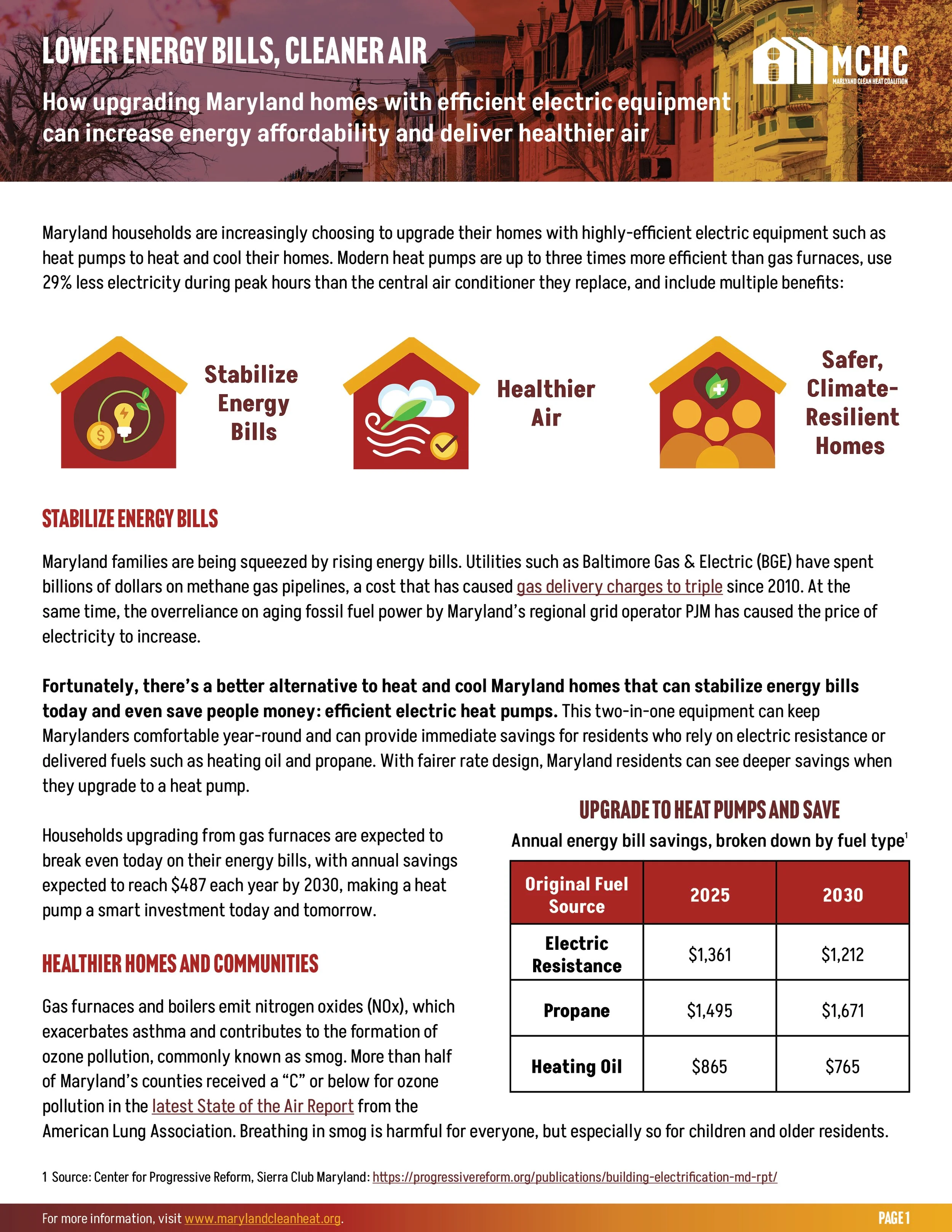 How upgrading Maryland homes with efficient electric equipment can increase energy affordability and deliver healthier air. Read here.